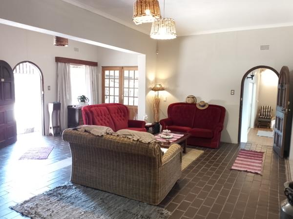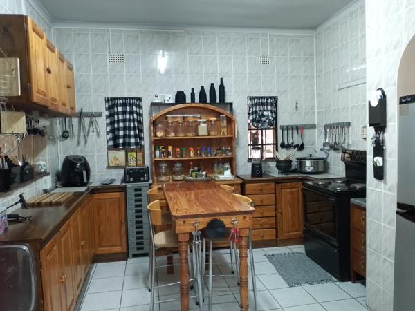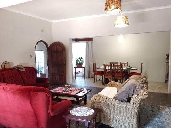 3 Bedrooms | 2 Bathrooms (Main En-Suite) Fitted kitchen with scullery. Spacious lounge and dining room, Bar area leading onto a sunny patio, Established garden with mature trees and open lawn areas. Loads of parking with 7 carports and 2 shade net bays