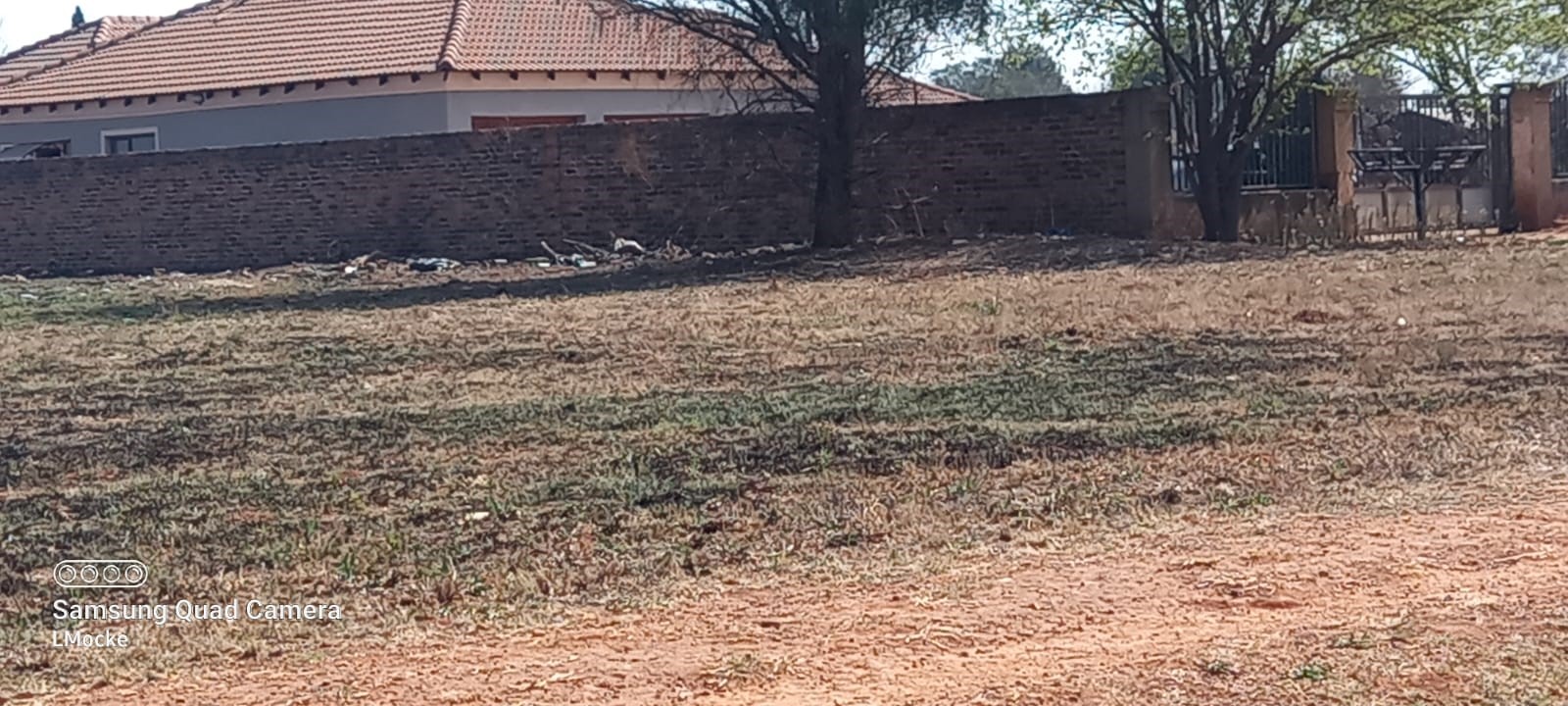 Flat land with one wall on the side. No trees. Lovely situated on a tar road.