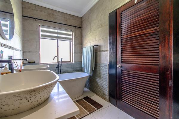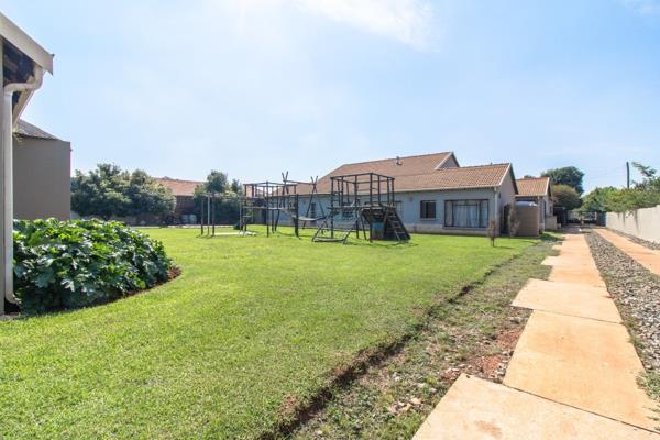 Outdoor living is a highlight, with a large garden, a refreshing swimming pool, and a deck for relaxation. The property also features a lapa and a built-in braai, ideal for outdoor entertaining. For families, a substantial children''s play area adds to the appeal. Security is well-addressed with an alarm system, CCTV, intercom, and a totally walled perimeter. Sustainability features include water tanks, an irrigation system, and a borehole, ensuring water resilience. The home is also equipped with air conditioning and fibre connectivity.