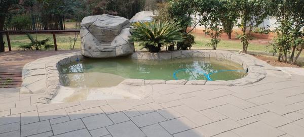 This spacious double-storey home offers comfort and functionality for a growing family. The ground floor features four well-sized bedrooms, serviced by three bathrooms, ensuring convenience for the household. A fully operational kitchen flows into the sitting room, where a cozy fireplace creates a warm and inviting atmosphere.