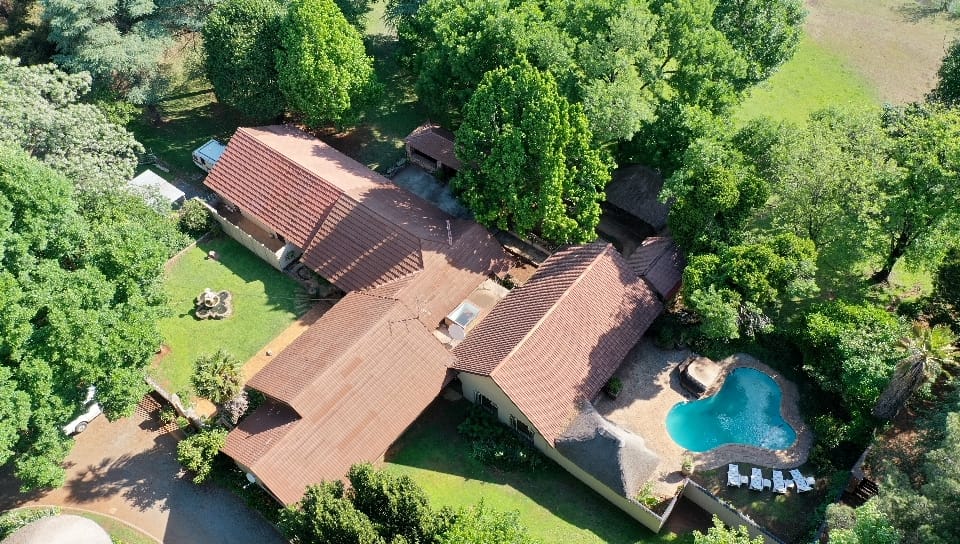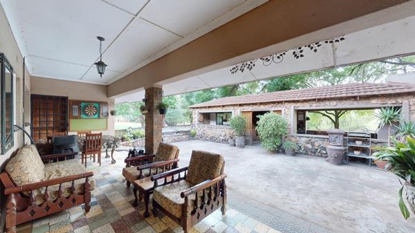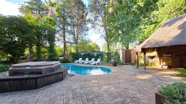 For those with equestrian or agricultural interests, the property includes six stables, spacious storerooms, and well-built chicken and pig enclosures, all supported by three-phase power. A large garage and workshop provide ample space for vehicles, tools, and machinery. Outdoor leisure is equally impressive, with two entertainment lapas complete with built-in bars, a sparkling swimming pool, and a relaxing Jacuzziall overlooking the expansive gardens. The fully irrigated grounds, fed by both river water and a borehole, are enhanced by fruit trees, fenced camps, and vibrant lawns, giving the property a resort-like feel.