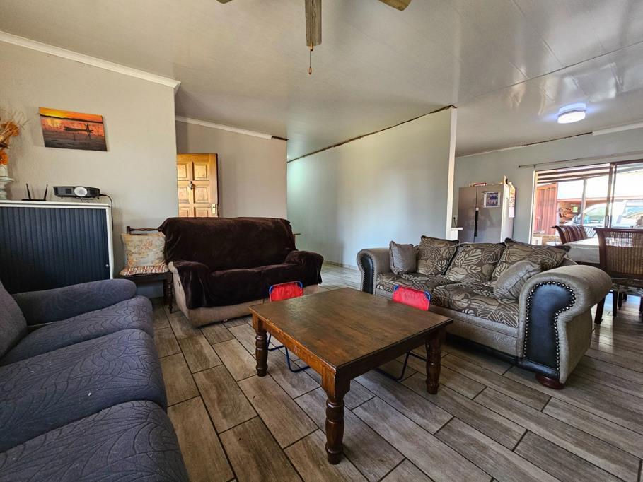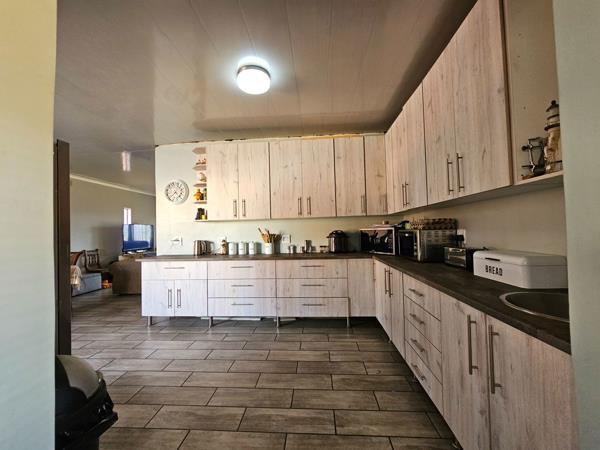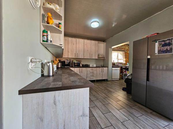 Three-bedroom home in Kookrus. This property offers a spacious open plan lounge and dining room and a melamine kitchen with gas stove and separate scullery area.