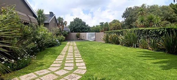Formal lounge with a fireplace, flowing seamlessly through glass doors to the manicured garden