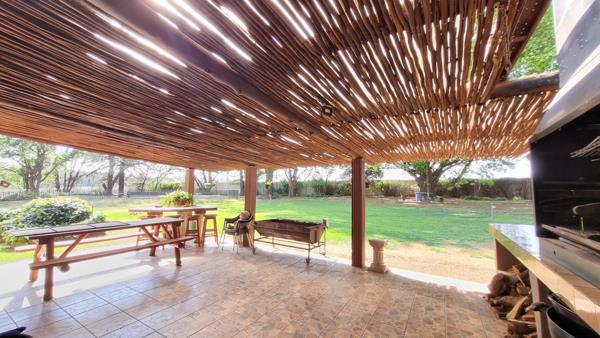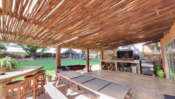 Complementing the main house are two additional dwellings: a charming thatched cottage with a cozy bedroom, bathroom, open-plan kitchen with a gas oven and stove, and a TV room as well as a modern flatlet, perfect for guests or extended family, featuring 1 bedroom, a bathroom, and an open-plan kitchen and living area.