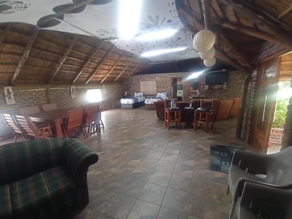 Thatched cottage featuring 6 beds, open plan kitchen, large living area with built in braai, private double bedroom and bathroom ideal for family or group booking