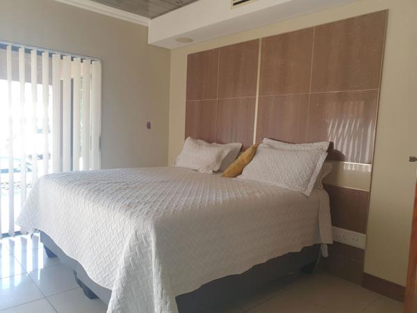 Main en-suite bedroom with a sliding door opening unto a veranda.