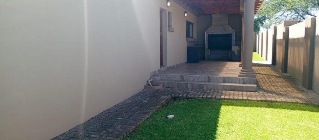 The home is perfect for those who love to entertain, featuring a built-in braai and a separate scullery conveniently located near the entertainment area. A computerized sprinkler system keeps the garden looking immaculate with minimal effort. Pet owners will appreciate the private yard, offering a secure and welcoming space for furry friends to enjoy. This property truly combines practicality, comfort, and lifestyle in