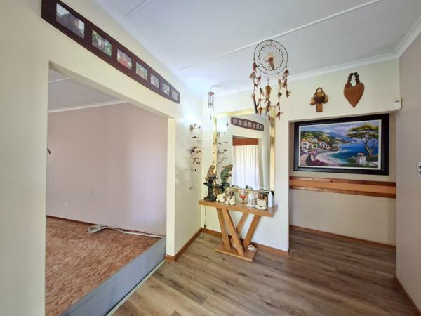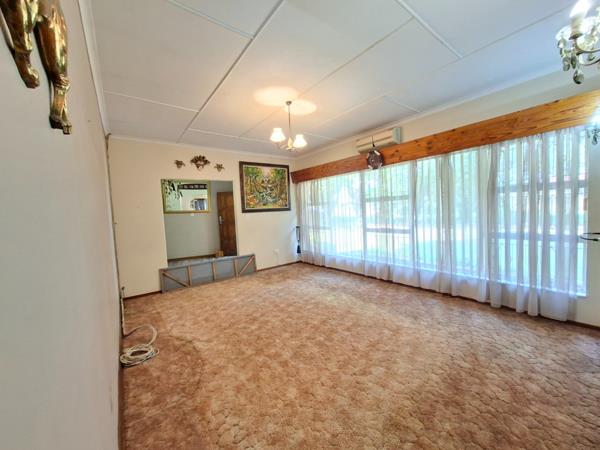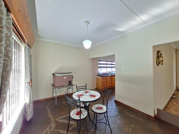 The spacious kitchen is fitted with granite countertops, ample cupboard space, and a separate scullery and laundry area. It flows seamlessly into the dining room, creating a warm and functional living space. The living room is also fitted with an air conditioner for added comfort.