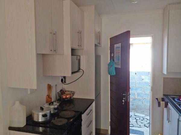 Two-bedroom home in Savanna City. This property offers an open plan lounge and neatly fitted melamine kitchen.