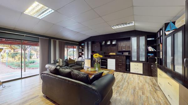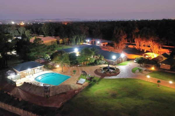 The property includes electric fencing for enhanced security, a swimming pool perfect for relaxation and leisure, and a boma ideal for social gatherings and outdoor fires. The flatlet features a living room with air conditioning, a kitchen with a gas stove, two bedrooms both with air conditioning, a bathroom with a shower and toilet, and an additional separate toilet. The outside entertainment area boasts a wine cellar with a capacity for 700 bottles, a guest toilet, a projector, and a built-in bar.