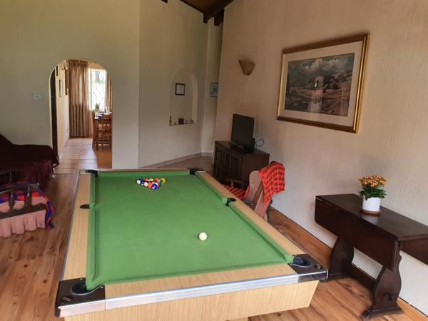 Outdoors, youll find multiple entertainment areas including a covered patio, open entertainment spaces, a built-in braai, a sunny deck, and a charming pond nestled within the garden. The property also offers stables, making it ideal for horse lovers or those seeking a true country lifestyle. Pets are welcome, adding to the appeal of this family-friendly home.