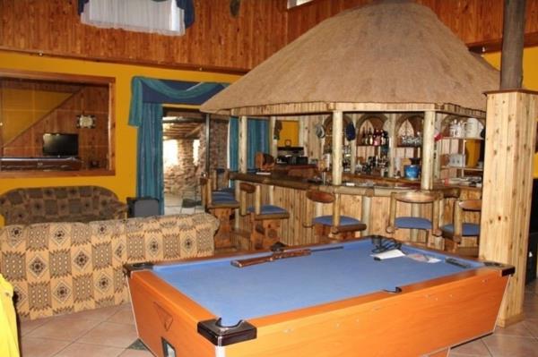 dining area, a huge modern kitchen, bar and pool table area, and a huge veranda