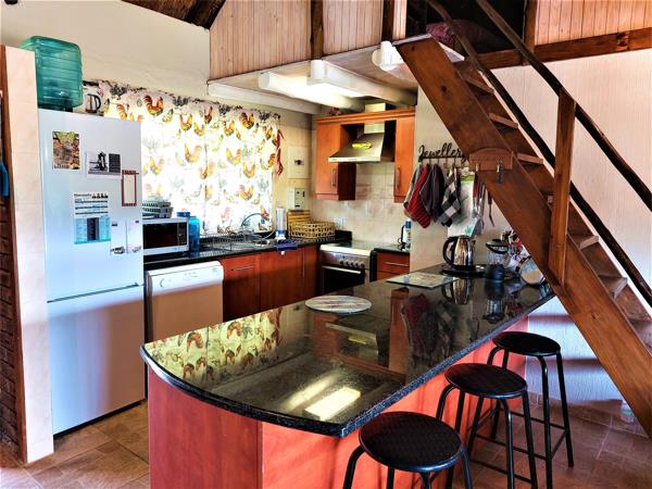 The thatch house has two bedrooms downstairs both en-suite while the two bedrooms upstairs have a guest toilet to use. The kitchen must always have a gas stove instead of electric appliances.