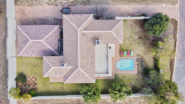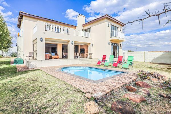 5-bedroom, 4 and a 12-bathroom home, 4 en-suite. Modern and practical finishes offers uncomplicated family living with superb views of the Estate. Large open-plan living area, with a cozy fireplace leading onto an enclosed patioentertainment area with a built-in braai, stacking doors opening outside inviting you to enjoy and play in the spacious garden and sparkling pool. Triple garage big enough to house your boat and toys.