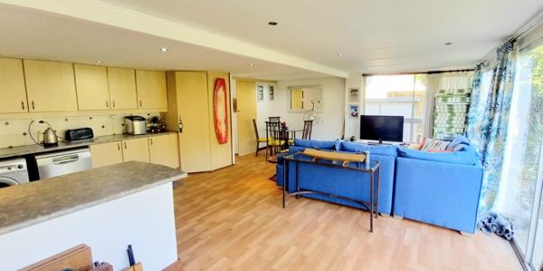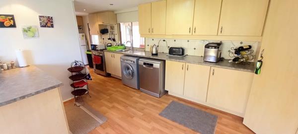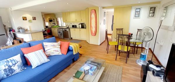 Just a stone throw away from the waterfront you will find this cosy getaway home with 4 bedrooms with built in cupboards. 2 bathrooms, open plan living area extending out to a private garden with a thatched lapa, All the floors are laminated. Single carport. Furniture, Appliances and Inverter are included in the price.