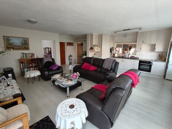 opening into garage and garden. Garage fitted with cupboards and forms part of patio kitchen. Guest toilet with fittings for washing machine and tumble dryer. Fully Manicured, enclosed garden with sprinkler system. This house is a must see