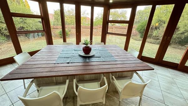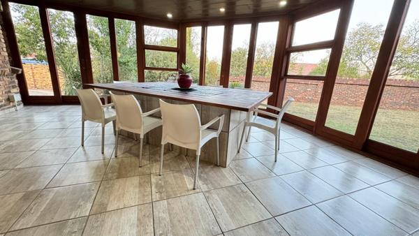 The beautiful garden provides plenty of space for entertaining, with a large central braai area where you can enjoy long evenings around a cosy fire. A double garage completes this picture-perfect home.