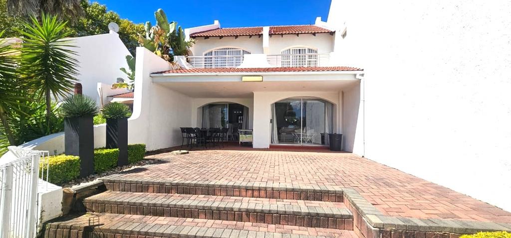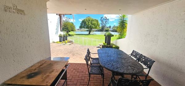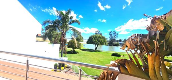 Peacepeace and more peace Come and start a new beginning here with this delightful double story home overlooking the pond with a view of the dam. The top level has 3 well sized bedrooms, 2 with a balcony and 1 with en-suite bathroom. 2nd Bathroom with shower. Ground level consist of a guest toilet, charming open plan wooden kitchen with extractor fan, hob, oven, breakfast bar and pantry. Open plan living area tiled, dining room cum family room with sliding doors to outside and a fire place to keep you warm and snuggled up during winter time. Double Carport. 50m2 Boat Locker included.