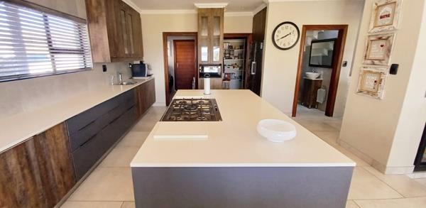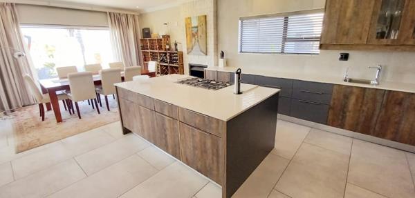 The living areas are designed to make the most of the spectacular dam views. Enjoy a seamless flow between the open-plan lounge, dining room, kitchen, and entertainment area, complete with a built-in gas braai that opens onto a patio overlooking the water.