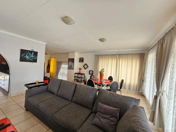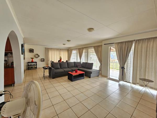 Step inside to an inviting open-plan living and dining area, characterized by durable tiled flooring and abundant natural light. The property consists of a large kitchen, open plan family room, dining room, 3 bedrooms, main en-suite, 2 bathrooms, complemented by ample storage, and a separate laundry room, with a full outside bathroom.