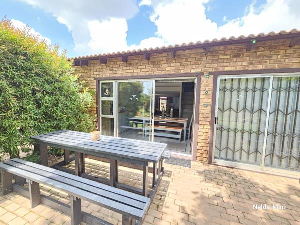 Well maintained 3-bed-roomed unit, with a lovely garden and stream in front of it. Open plan living area, the patio is enclosed and forms part of the living area. Outside braai with more than enough space to sit and relax after a days hard playing on the water. A boat locker and Jetty are included in this package.