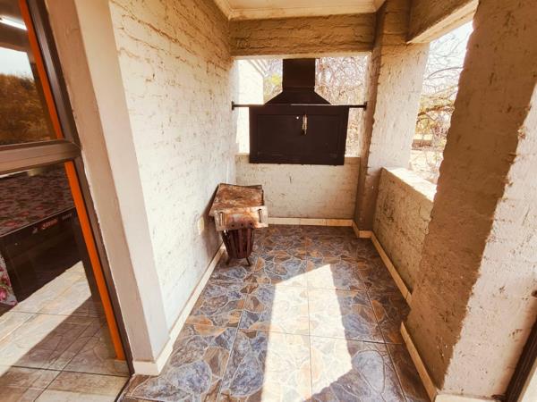 The upstairs living area opens up to a balcony with a build in braai and offers amazing views of the Vaal Dam.