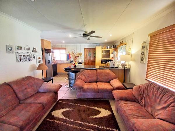 With 3 bedrooms, 1.5 bathrooms, and an open-plan lounge and kitchen, this home is designed for comfort and relaxation. The spacious entertainment area, enclosed with trellies and roll-down blinds, features stunning views of the Vaal Dam and includes a built-in braai for those lazy afternoons. A boat locker and jetty are also included.