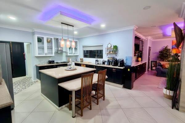 Open-Plan Living Area Featuring a double-sided grand fireplace, creating a warm and inviting atmosphere ideal for family gatherings. Dining Area with Built-in Braai Seamlessly opens to the beautifully landscaped garden and solar-heated splash pool, perfect for outdoor entertaining. Undercover Patio Equipped with roll-up blinds for versatile use in any weather, offering the perfect spot to relax. Gourmet Kitchen with Scullery Ideal for culinary enthusiasts and entertaining, complete with ample storage and preparation space. Climate Control A powerful 36,000 BTU air-conditioner in the living area ensures year-round comfort and relaxation. Double Garage converted into Game Room but still Double tiled garage, 2 Carports for additional parking, providing ample space for vehicles and hobbies. Undercover lockup storage To safely store bicycles, golf cart, and toys, keeping your outdoor gear organized. 12KVA Solar System with 12 Panels Enjoy reduced electricity costs and increased energy independence. Rainwater System & Automated Sprinklers Enhancing sustainability and convenience, perfect for the environmentally conscious homeowner. 16 HD Camera System For extra security and peace of mind, ensuring your family''s safety. Exclusive Estate Amenities: Private waterfront access with boat launching facilities, perfect for water sports enthusiasts.