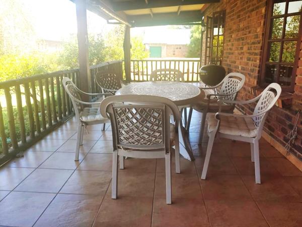 Partially furnished, comfortably sized family home comprising of 3 bedrooms, 2 bathrooms, main en-suite, with beautiful exposed wooden beams and staircase in the open plan living area. Lovely big country style kitchen with lots of cupboard space. Leading upstairs is a large loft room with a balcony overlooking the vast open waters of the Vaal Dam. Beautiful rolling grass takes you down to the waterfront to enjoy fun in the sun at the well kept waterfront just a stone throw away from the house.