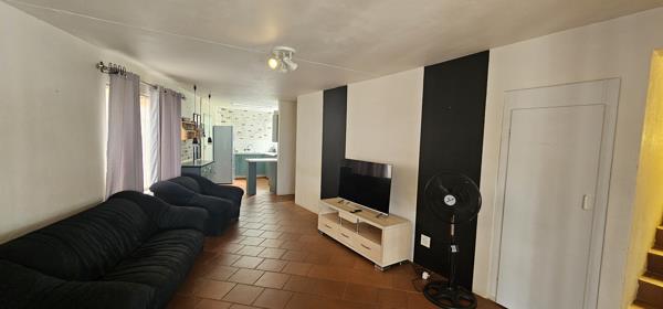 Living room leading onto a large enclosed patio with built-in braai and stacker doors. This area is perfect for entertaining no matter what the weather holds. Ideal for a big family to create many memorable times together.