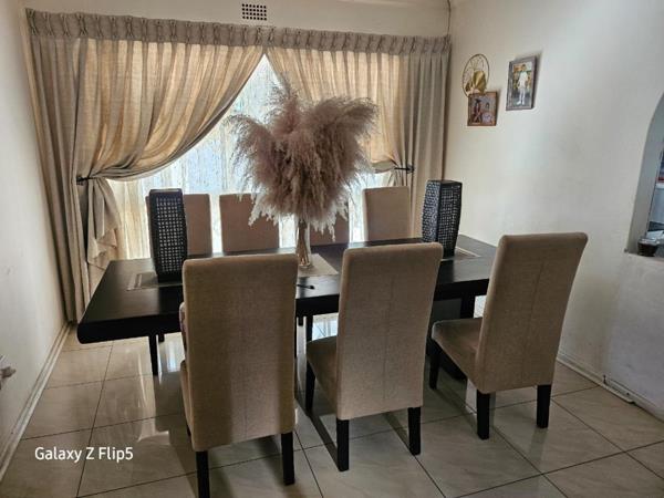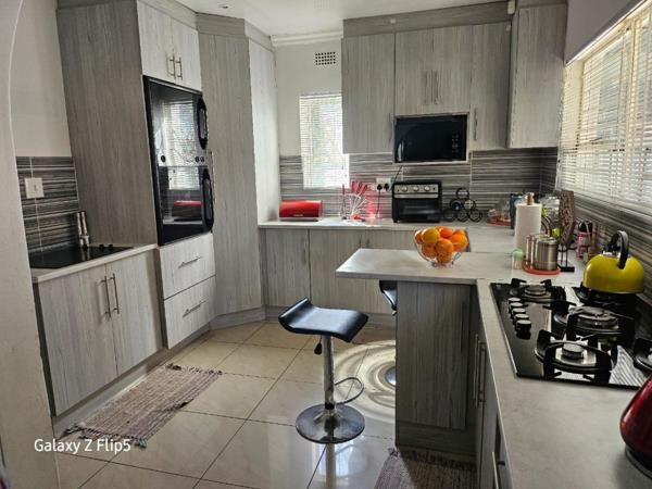This spacious and luxurious 3-bedroom house is designed for comfort, entertainment, and family living. It includes: 3Bedrooms- Main Bedroom: Ensuite bathroom with his and hers basins, built in wardrobes. Bedrooms 2 & 3 each have built-in wardrobes and a shared full bathroom. Has two Lounges and dining area that is centrally located, perfect for 610 seater table. Kitchen: Modern with center island, breakfast nook, ample cabinetry and Scullery: Tucked behind the kitchen with space for laundry & washing up. Has a bar with Stylish built-in bar adjacent to the dining room leading to indoor Braai Area great for socializing. Swimming Pool: Modern design with surrounding patio