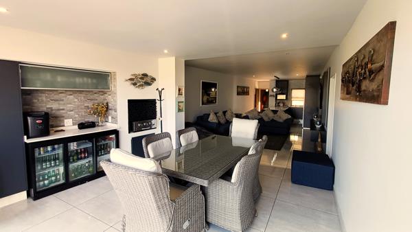 Seamless flow to a private patio and entertainment area overlooking the lush lawn and the Vaal River
