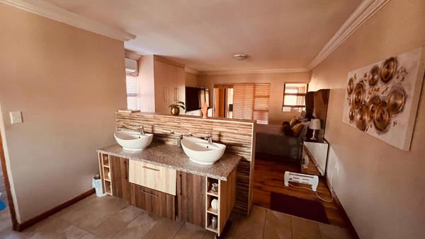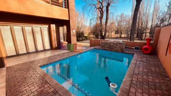 Downstairs, the house boasts an open plan layout, creating a seamless flow between the TV room, dining room, and kitchen, which together create a spacious and inviting atmosphere. There is a cozy lounge area for relaxation and entertainment, as well as a guest cloakroom for added convenience. The enclosed patio, complete with a built-in braai, is ideal for outdoor dining and entertaining. A refreshing pool offers a perfect spot for leisure and enjoyment, while three garages provide ample space for vehicles, storage, and parking.