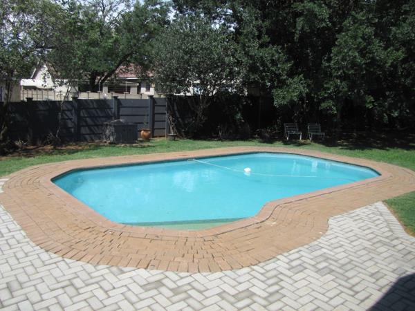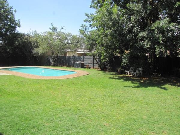 The remaining living space is an open plan dining / lounge area and adjacent to this is the large TV/entertainment room with a built-in braai. Sliding doors give access to the back garden and pool area.