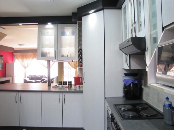 The property offers a suitable face brick family home that has an attractive kitchen with a stove (HOB), extract fan, ample built-in cupboards with fitted down lights and a breakfast nook. Leading off from the kitchen to the front of the property is a store room.