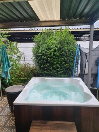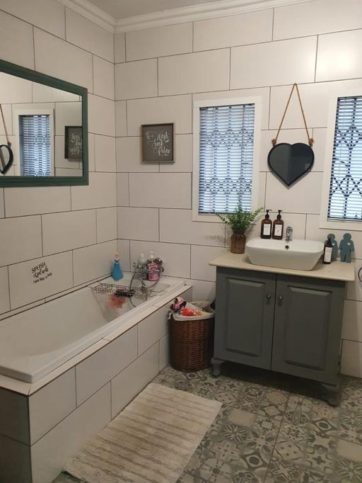The spacious lounge and dining area open directly onto the outdoor entertainment space, featuring a Jacuzzi and built-in braai, perfect for relaxing weekends and social occasions. The home is tiled throughout, offering a clean, cohesive look and easy maintenance.