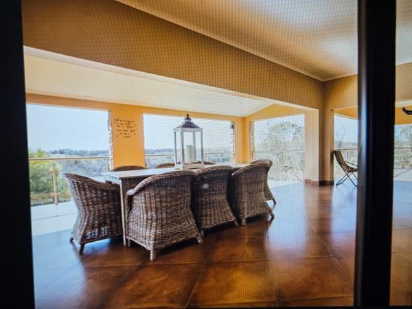 - Large open-plan living/dining/braai area with a built-in braai and rotisserie