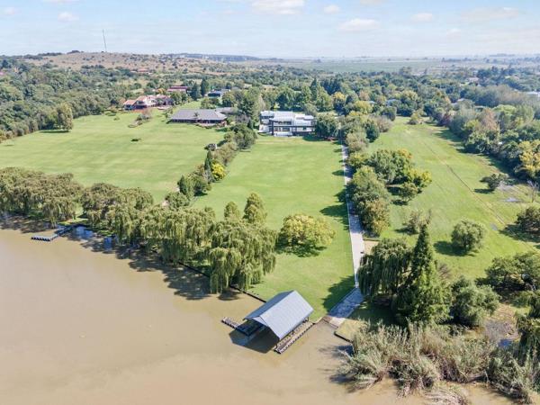 Nico van der Meulen Masterpiece. The exceptional made extraordinary. Occupying 2.4 hectares on 100 meter of private River frontage, this 1000m2 home looks down rolling lawns towards beautiful views of the Vaal River. This home is probably one of the most desirable and ultra modern masterpieces on the Vaal. Crafted to exceptionally high standards, no detail has gone unnoticed and everything from quality of finishes to maintenance have been addressed to ensure ease of living. This home invites family and friends with a design that balances privacy and shared company, a quality many would say far exceeds the price. This property has a second home with 1 / 2 bedrooms, bathroom, kitchen, and lounge. As well as a 2 bedroom cottage, 25 KVA solar system and 15 KVA generator.