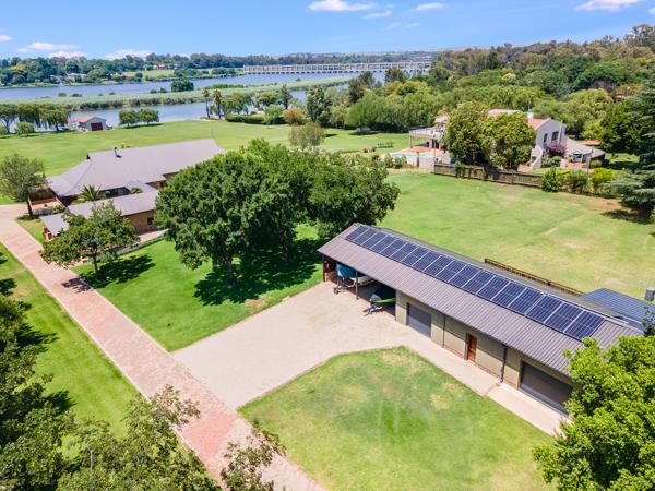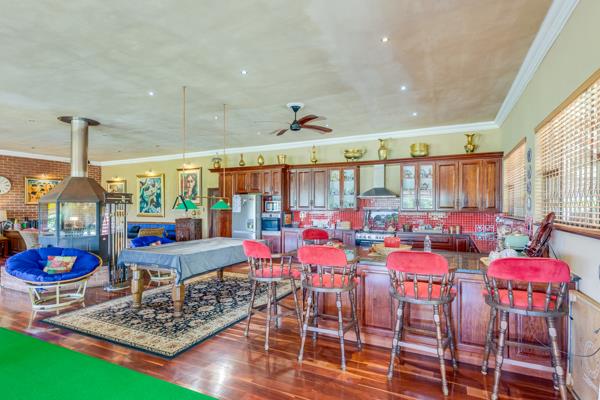 The main residence is a masterclass in design and craftsmanship, featuring elegant teak flooring throughout and four spacious and elegant en-suite bedrooms. The very spacious main suite is designed for total privacy, a spa-like bathroom, generous cupboard space and a stunning view, compliments a beautiful sanctuary. The expansive living area includes a gourmet kitchen with dual lounges, a grand dining area, and a study with a centre statement fireplace that creates warmth during the colder months. Off the kitchen, a large scullery, pantry, and walk-in fridge offer exceptional functionality. A large separate linen room and small wine cellar completes