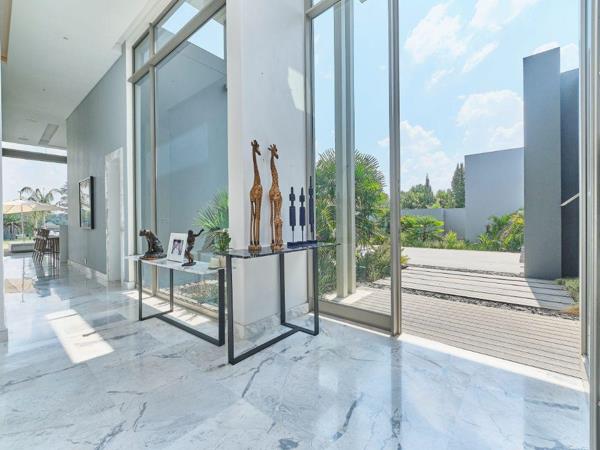 NEW RELEASE. Set on Millionaire''s bend, this exquisite newly completed mansion is one of the finest private Estates on the banks of the popular Vaal River. With no expense spared, the contemporary masterpiece sprawls over 2 000sqm under roof and is sequestered on a manicured 5 Hectare stand. From the impressive, with imported marble flooring, entrance numerous reception areas spill to the oversized covered patio and cocktail bar. Elevated and heated rim-flow pool and spa and fire-pit set the scene. Other areas include the billiard room, bespoke 20 seater cinema with automatic reclining leather chairs, electric curtaining and blinds. Gourmet social kitchen with top integrated appliances and scullery. 5 Generous bedroom suites plus pyjama lounge. Full home automation, piped music and underfloor heating. All bespoke furniture included.