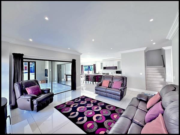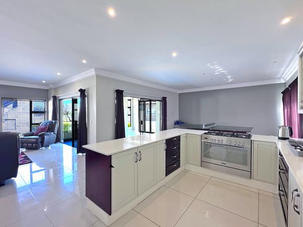 Set within a secure, sought-after estate on the banks of the Vaal River, this 4-bedroom, 3.5-bathroom home is beautifully designed for modern family living. The thoughtful layout maximizes space and flow with an open-plan kitchen, lounge with fire place, and dining area at its heart, seamlessly connecting to the patio with built in braai and stacker doors. Upstairs, two en suite bedrooms each walk out onto a private balcony, offering stunning views of the garden, pool, and river. A scullery adds convenience, while the double garage ensures secure, direct access. In addition a boat locker is also included.