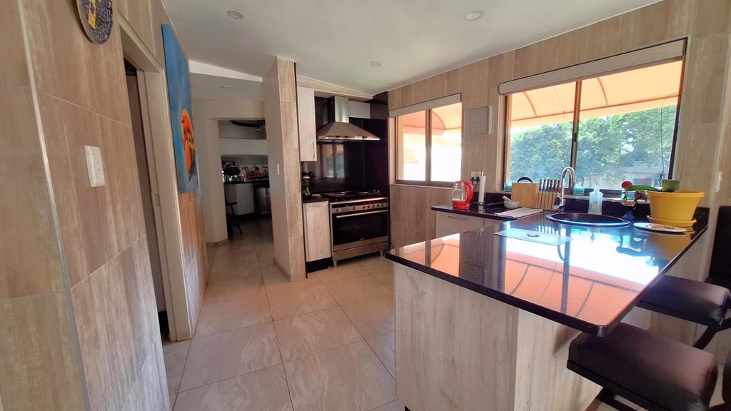 Modern kitchen with scullery and pantry, flowing into the indoor bar, dining area, and lounge