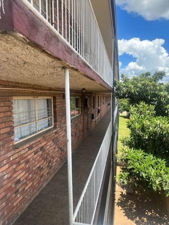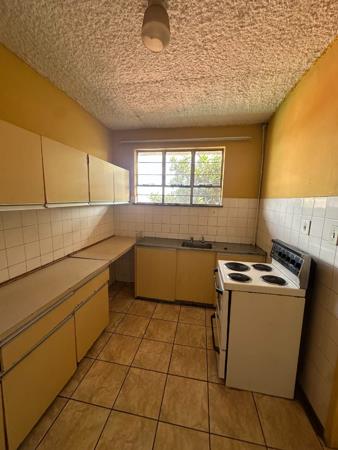 The apartment boasts a fully tiled open-plan dining and living area that opens onto a private balcony with lovely views of the landscaped gardenperfect for relaxation. The kitchen is fully tiled and fitted with built-in cupboards, a stove, and a double sink, offering both functionality and style.