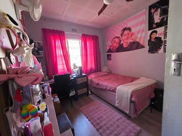 This residence comprises three comfortable bedrooms and two bathrooms, including one en-suite, ensuring privacy and convenience. Bedrooms feature either classic parquet or modern laminate flooring, ample natural light, and practical ceiling fans. Security bars on windows throughout the home provide an added layer of safety.