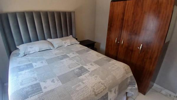 This attractive home features two comfortable bedrooms, a spacious lounge, and a well-appointed bathroom. It also includes practical amenities such as built-in cupboards for ample storage, durable steel windows, and a sturdy tiled roof, ensuring lasting quality.