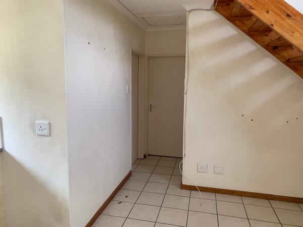 This cozy 2-bedroom house features an open kitchen and lounge area, providing a spacious feel. The upstairs room offers versatility as either an office or potential third bedroom. The full bathroom includes a bath, shower, toilet, and sink. Both bedrooms come equipped with built-in cupboards. Security is a priority with an installed alarm system, and the property includes a separate lockup garage. Situated in a newly developed area, it offers convenience being not far from town.