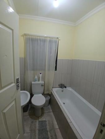 Tuscan roof that offers 2 bedrooms, 2 bathrooms, open plan tv room and kitchen, main bedroom offers Bic and the en -suite. The floors are well tiled, ceilings are well painted. Main bedroom is quite spacious and offers a lot of space to utilise.2nd bedroom offers no BIC . Well painted outside and it offers aluminium window frames and buglar bars.. Situated in a well developed area with tarred roads and street lights.