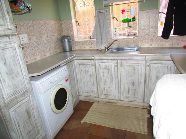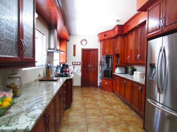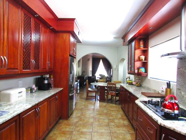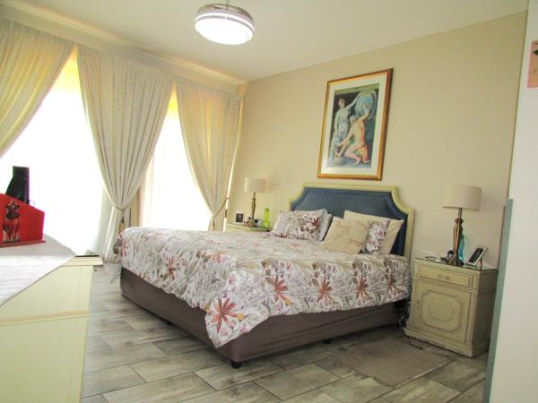 The first house consist of a one bedroom with walk-in closet and a full bathroom, as well as a complete study with loads of cupboard space. The kitchen is completed with rose wood and granite tops. Gas hob and eye level oven. Pantry as well as a scullery and separate laundry with a guest toilet. The entrance to this house is glamorous walking into the dining room, then kitchen with breakfast nook. There is a lounge with a permanent wall unit, covering one wall completely.