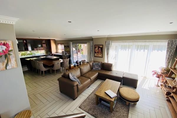 The Scandinavian-style kitchen is a chefs dream, featuring elegant Caesarstone countertops, a dual gas and Siemens electric stove, separate electric oven, ample cupboard space , a large pantry, and a scullery accommodating a dishwasher, storage cupboard and a double sink making this kitchen as functional as it is beautiful. The kitchen is connected to the dining area with a beautiful genuine Oak dining table.