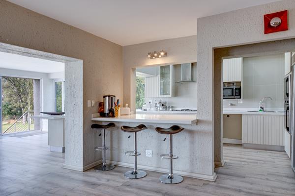 Upstairs, a pool table room with a jet master wood-burning fireplace, a snug seating area and a small kitchenette opens onto a very spacious terrace for private entertaining. A loft storeroom contains the 7 geysers for the main building.